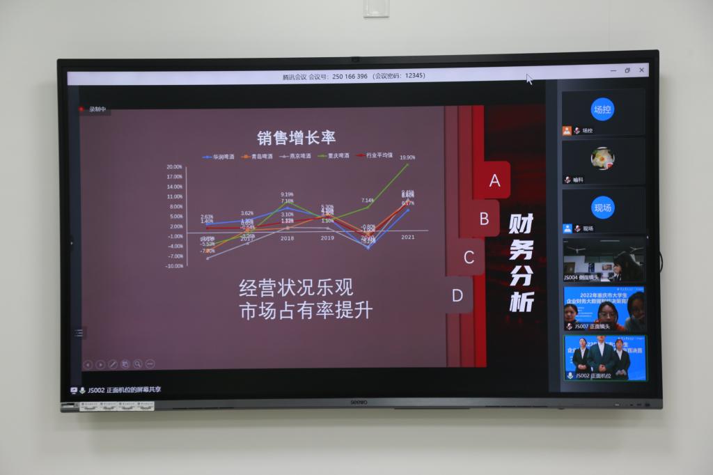 为贯彻落实《教育部关于加快建设高水平本科教育全面提高人才培养能力的意见》,切实提高大学生创新精神和实践能力,进一步加强大学生学科竞赛组织管理,2022年11月13日,由重庆市教育委员会主办,mansion88明升承办,教育部会计信息化课程虚拟教研室、金蝶精一信息科技服务有限公司协办的重庆市大学生企业财务大数据智能决策竞赛决赛于线上举行。