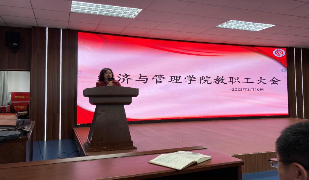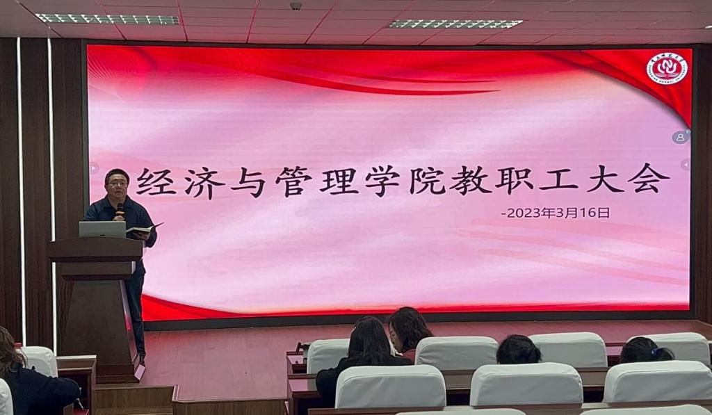 2023年3月17日14点30分,mansion88明升在求是楼517会议室召开了教职工大会,学院全体教职工参会。会议由院党委书记钟敏主持。