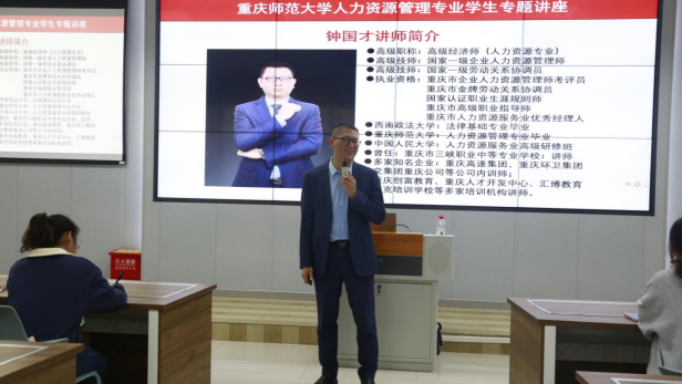 为进一步提升学生求职能力,下午三点,我院面向人力资源管理专业学生于求是楼131组织开展“人资专业在校如何锻造为优秀的HR”生涯规划讲座。讲座中,国家一级企业人力资源管理师、优秀校友钟国才围绕职场招聘与人力资源管理、当代社会的职业选择与发展、提升自己优势与应对挑战的方法、职场成长与个人发展规划等多个方面展开分享。他指出,在当今社会的各种行业中,各种新兴产业正在崛起,如何把握住机遇,显得尤为重要;并带领学弟学妹们深入探讨了提升自身优势与职业素养对于求职的重要性以及工作目的与实现个人价值的关系。此外,钟国才校友强调了掌控主动权以及克制欲望的重要性,并表达了对大家“前程可奔赴,岁月可回首”的美好祝愿。