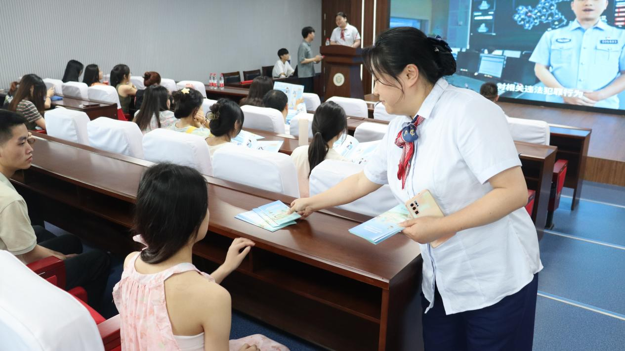 邓婧老师则全面系统地介绍了多种常见的诈骗手法,内容涵盖刷单返利、虚假网络贷款、虚假征信、虚假购物服务、冒充领导熟人、网络游戏产品虚假交易及赌球等多个领域。此外,邓老师还深入解读了《中华人民共和国反电信网络诈骗法》的相关条款,积极推广了八个“凡是”的全民反诈新理念。她还通过分发防诈骗宣传单的方式,鼓励同学们继续深入学习并加深对防诈知识的理解与掌握。