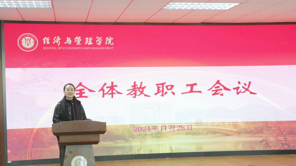 此外,针对人社局2024年度社会保险新缴费基数的有关政策变动,为了帮助大家更好的了解具体情况,学院党政办公室主任杨莉华做了相关政策的解读。学院副院长陈宇科针对研究生培养工作提出了相关意见建议,强调了加强毕业生论文质量监控、毕业生就业指导工作,努力做好提升毕业生综合素质和市场竞争力的相关工作。