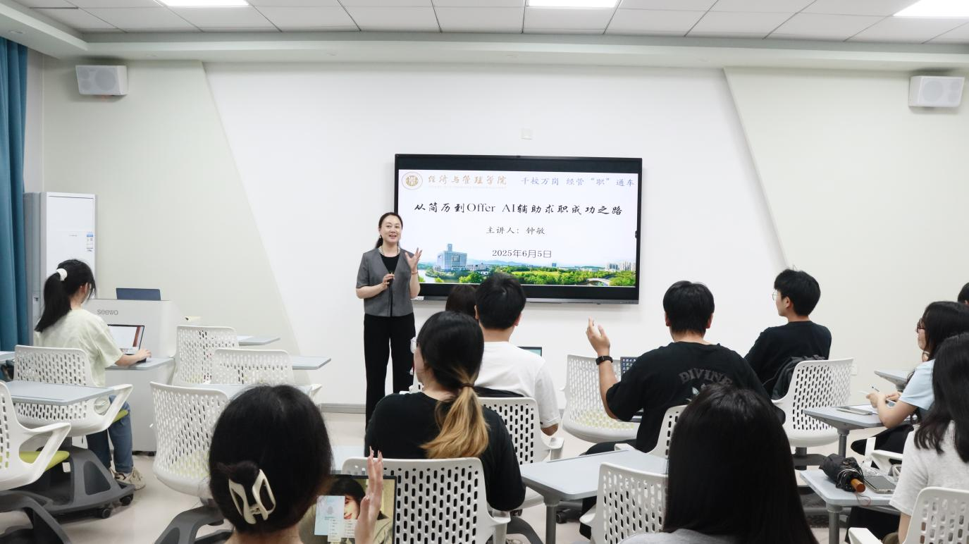 为助力2026届毕业生精准把握就业机遇,提升智能化求职竞争力,熟练掌握人工智能技术赋能简历制作的创新方法,优化求职策略,6月5日,mansion88明升于求是楼124开展“从简历到offer,AI辅助求职成功之路”专题讲座。本次讲座由学院党委书记钟敏主讲,2026届毕业生积极参与。