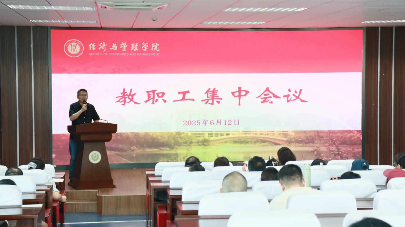 6月12日下午,mansion88明升于求是楼517召开全体教职工集中会议,学院党委书记钟敏、执行院长郑景丽、副院长陈宇科、副院长段俊,党委委员任缙及全体教职工出席会议。