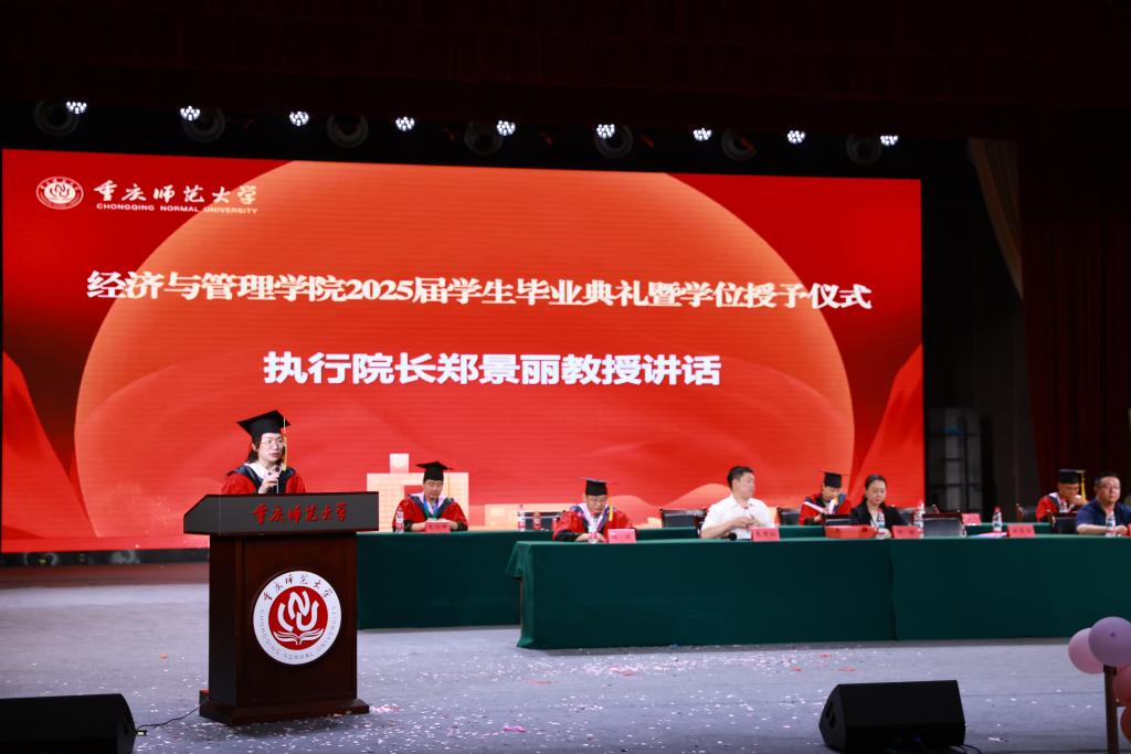 执行院长郑景丽对圆满完成学业的毕业生们表示衷心的祝贺。在讲话中,她回顾了2025届毕业生在校期间取得的丰硕成绩,并向2025届毕业生提出四点希望:一是胸怀家国,勇担使命,将个人理想融入民族复兴伟业;二是脚踏实地,任性成长,在平凡中创造不平凡,于逆境中磨砺心智;三是终身学习,知行合一,以持续学习力应对时代变革,以实践检验真知;四是珍惜健康,热爱生活,保持身心平衡,始终自信快乐地成就有意义有价值的人生。