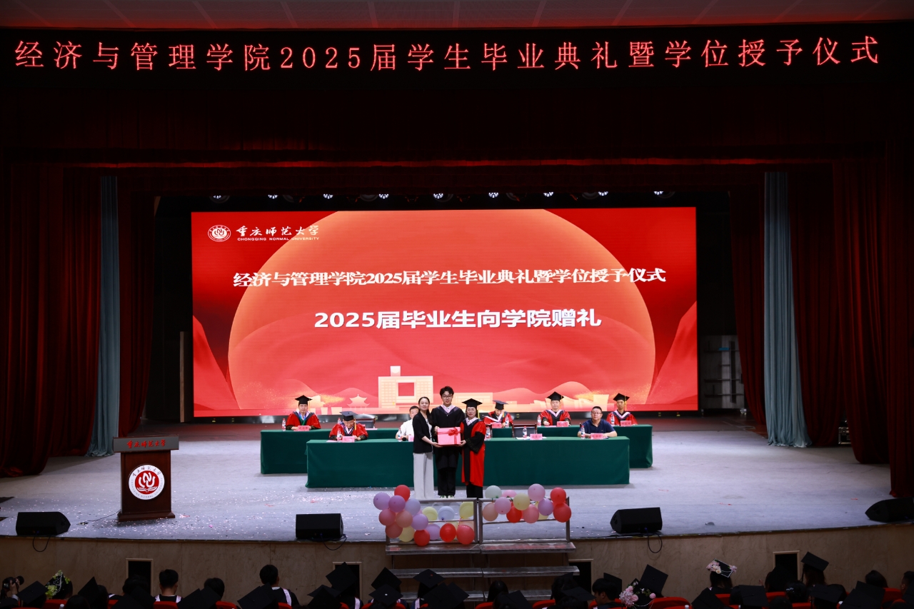 深情回望,感恩流淌。本科毕业生韩东朕、硕士毕业生张驭博分别代表2025届本科毕业生和硕士毕业生发表毕业感言,他们回顾了本届学生自进校以来在重师经管学院这个舞台上的学习成长历程和广泛开展学术探索、积极投身参加社会实践的丰富经历,真挚地表达了对学院悉心培养、师长谆谆教诲的感恩,表示将带着“致知、致用、致远”的院训精神奔赴祖国四面八方,誓言将以更扎实的专业能力和更深沉的责任感,投身社会建设,不负母校的培养。为铭刻这份深情,毕业生代表向学院赠送了寓意深远的纪念礼物。