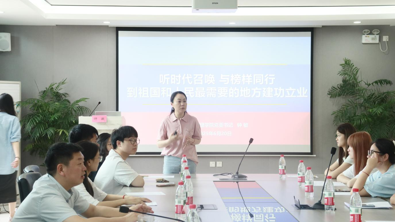 钟敏以“听时代召唤,与榜样同行,到祖国和人民需要的地方建功立业”为主题,为毕业生党员们讲授了一堂深刻而有温度的毕业前“最后一堂党课”。她指出当下时代充满机遇与挑战,国家发展、民族复兴需要青年接力奋斗,毕业生党员应将个人理想与国家命运紧密相连,坚守初心、不被利益迷惑。她鼓励大家以先进典型为榜样,汲取奋斗力量提升自我,并殷切寄语毕业生党员奔赴祖国和人民最需要之处,无论是繁华都市还是偏远乡村,都要用所学服务社会、造福人民,书写精彩人生。
