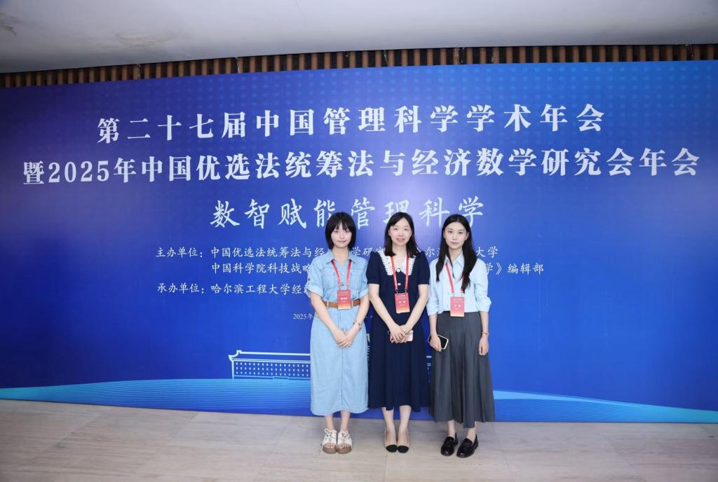 2025 年 8 月 15 日至 17 日,第二十七届中国管理科学学术年会在哈尔滨隆重举行。mansion88明升任缙教授带领研究生穆珂伊、李倩参会并进行学术汇报。其中,李倩同学的研究成果获评“推荐论文”,彰显了我院在管理科学领域的学术影响力与研究生培养成效。