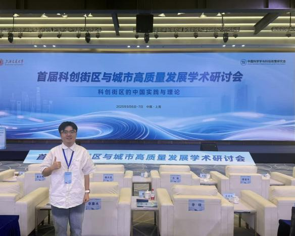 2025年9月6日,由上海交通大学和中国科学学与科技政策研究会主办的首届科创街区与城市高质量发展学术研讨会在上海交通大学举行。我院2024级数量经济学专业研究生姜吉东代表团队参会并作学术报告,荣获优秀论文一等奖。