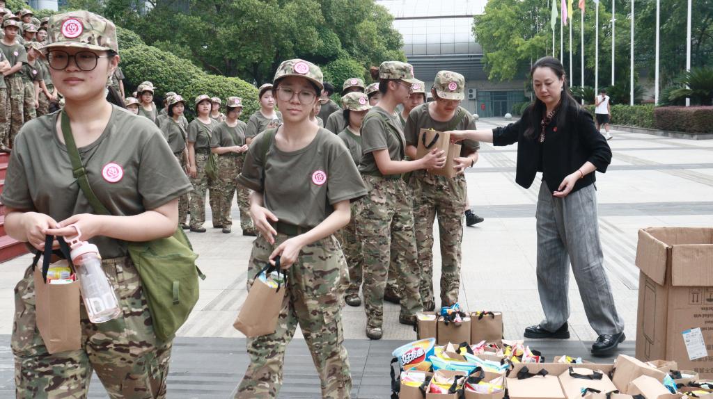 随后,学院领导和老师们为各连队同学分发了精心准备的慰问礼品和定制书签。一份份礼品传递着学院的温暖关怀,一枚枚书签寄托着对学子们“书香致远、学业有成”的美好祝愿。同学们脸上洋溢着感动与喜悦的笑容,纷纷表示感谢学院的关爱,一定不辜负领导老师的期望,以更饱满的热情完成后续军训任务,并在未来的大学旅程中勤奋学习,砥砺前行。