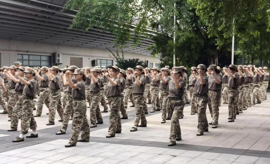 训练场上,新生们身着整齐军装,身姿挺拔。队列训练环节,他们严格依照教官指令,从稍息、立正到齐步走、正步走,每个动作都反复练习,力求精准规范。在军体拳训练中,新生们目光坚定,出拳刚劲有力,踢腿虎虎生风,每一招都蕴含着蓬勃的力量,吼声震天,尽显青春的朝气与豪迈。臂手操训练时,大家动作整齐划一,手臂伸展、弯曲、旋转等动作精准到位,节奏明快,充分展现出良好的协调性与团队默契。学院领导详细了解了军训的推进情况以及新生的适应状态,对同学们不惧艰苦、坚持训练的精神给予充分肯定。