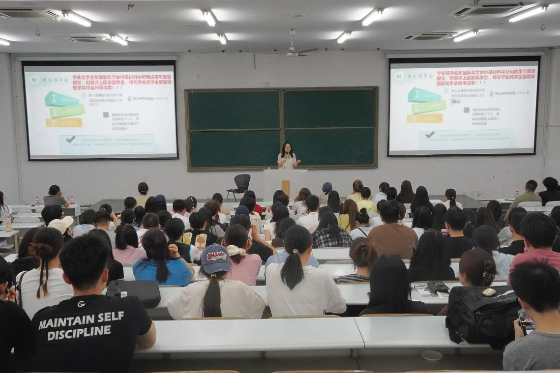 在学业与资助政策说明环节,辅导员王雪薇详细介绍了我院奖助学金政策,对申请渠道、评选标准等同学们普遍关注的内容进行了细致说明,体现了学院对学子们的人文关怀与支持。随后,教学秘书吴云则围绕培养方案、学位授予要求及教学管理等方面进行了清晰解读,为同学们指明了未来三年的学习路径和学业要求。