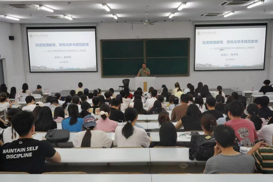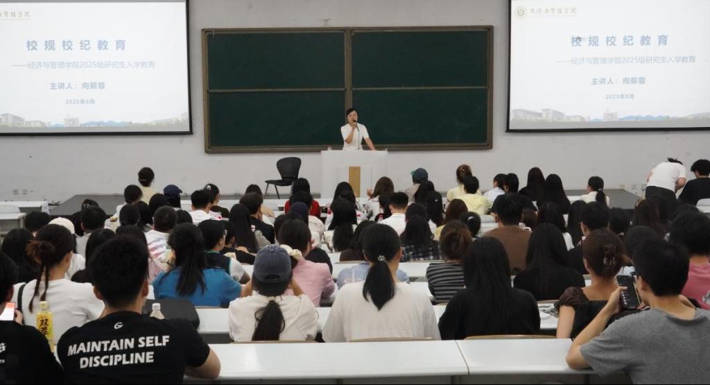 2025年9月25日下午,mansion88明升在图北楼17101教室举办研究生新生入学教育大会。学院副院长陈宇科,教学秘书吴云,研究生辅导员向薪蓉、王雪薇,以及学院2025级研究生新生参加。