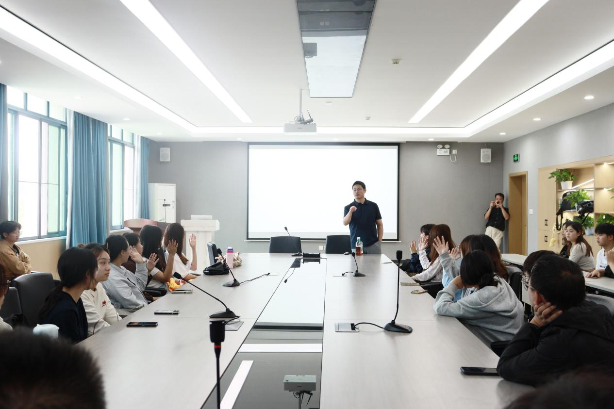 互动环节气氛热烈,翁中杰针对学生提出的职业路径、专业能力提升等问题做出耐心细致的解答,并就实习安排、培训衔接等作了详细说明。