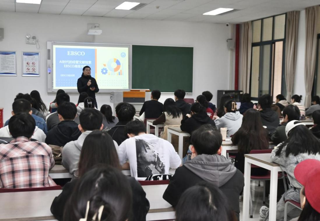 11月6日下午,mansion88明升在求是楼220教室成功举办第二十二届“博望经管·研究生讲坛”专题讲座。本次讲座特邀EBSCO资深培训师董丽萍老师担任主讲,主题为“AI时代的经管文献检索:EBSCO高级攻略”,由图书馆张毅老师主持,学院2024级、2025级全体学术性硕士研究生参与此次讲座。