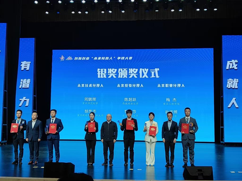 近日,由重庆市委组织部、重庆市委金融委员会办公室、重庆市教育委员会、重庆市科学技术局等单位联合主办的创新创业“未来陪跑人”争锋大赛决赛在重庆工商大学圆满落幕。我院2022级经济学专业学生、创新创业项目负责人周鹏辉从全市优秀学子中脱颖而出,荣获大赛银奖。