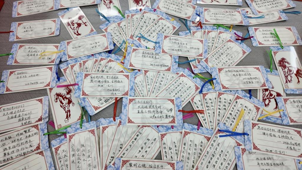 我院研究生们也通过手写明信片的方式为考研学子送上祝福。明信片背面印着的骏马剪纸图案,寓意着在即将到来的马年里,学子们能够“马到成功”。百余张卡片上,或书写励志诗句,或留下暖心寄语,一字一句都凝聚着学长学姐的备考经验与真诚祝愿,成为考研学子冲刺路上珍贵的情感陪伴。