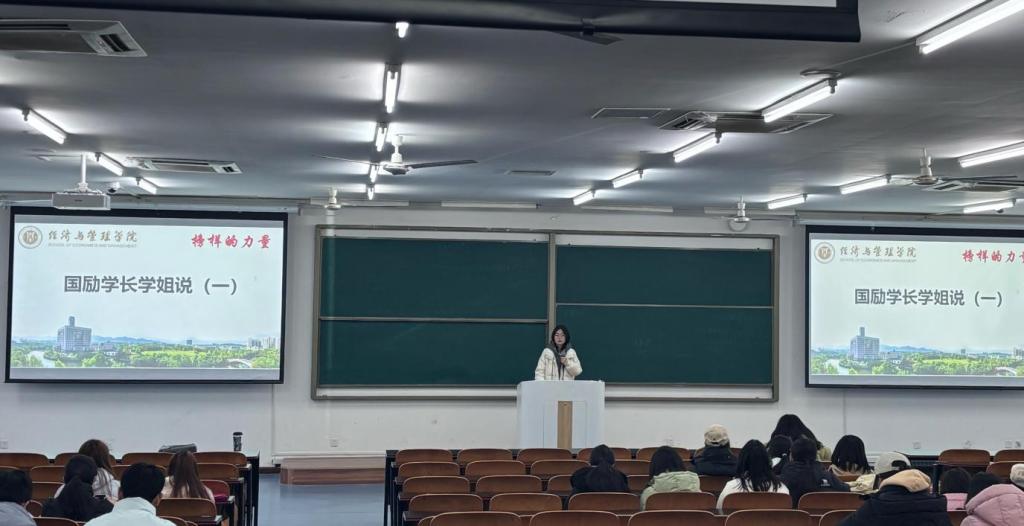 为深入推进资助育人工作,发挥榜样引领作用,树立奋斗标杆,帮助受助学生增强自立自强意识,培育感恩反哺情怀,12月14日,我院于砺志楼T2507开展国家励志奖学金获得者分享会。本次活动邀请两位励志奖学金获得者代表担任主讲,2025级全体学生参与。