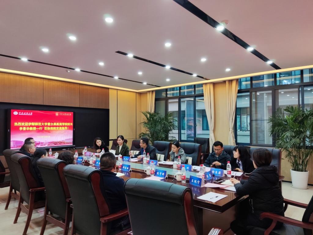 12月1日,伊犁师范大学霍尔果斯商学院院长李景华教授一行莅临我院调研交流,学院院长郑景丽教授、副院长喻科教授和陈宇科教授等参加本次座谈会。双方就学科建设、经管类学科和人才培养模式,课程体系及师资技术等方面展开了热烈讨论和交流。本次调研交流会由学院党委书记钟敏主持。