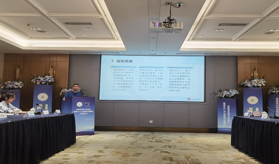 我院经济学系杜家廷教授参加论坛并作了主题为“新质生产力与制造业发展韧性关系”的汇报发言。杜家廷教授以成渝地区双城经济圈建设为背景,从发展新质生产力的战略意义、新质生产力对制造业发展韧性的提升作用、新质生产力对制造业发展韧性的异质性影响、新质生产力对制造业发展韧性的作用机制等多维视角向与会专家学者进行了深入汇报,得到与会专家学者的高度评价。杜家廷教授提交的研究成果《新质生产力对制造业发展韧性的提升效应研究》获得论坛征文三等奖。