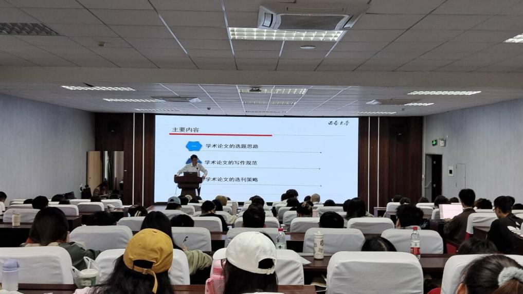 讲座伊始,张教授回顾了自己的考研经历和学习经历,非常亲切地拉近了与同学们的距离。随后,张教授详细介绍了学术论文的选题思路、写作规范以及选刊策略。