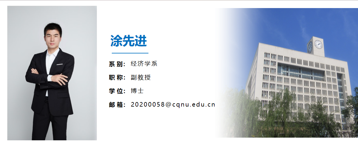 涂先进,男,汉,1982年生,博士学位,副教授,中国消费经济学会会员,主要研究方向为数字经济、居民收入与消费等,主持1项国家社科基金项目、1项重庆社科规划项目、1项重庆市教委人文社科项目,主研其它省部级以上课项,在SSCI、CSSCI等来源期刊发表论文10余篇。邮箱:20200058@cqnu.edu.cn