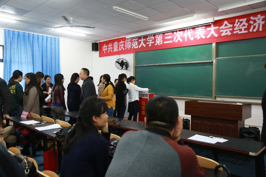 在庄严的《国歌》声中,大会正式拉开帷幕。首先税书记宣布第三次党代会代表候选人名单,并介绍其相关情况。参与本次选举大会的候选人总计13名,其中得票数前十位的候选人将代表我院参加我校第三次代表大会。大会全体党员通过了本次《选举办法》,确定了选举大会的工作人员名单。监票员为沈晓丰老师,计票员为赖苹,周玉琴老师。监票员沈晓丰老师报告,本次大会应到党员94人,实到党员87人。实到党员人数超过应到党员人数的五分之四,符合《中国共产党基层组织选举工作暂行条例》规定。随后,按照公平,公开,公正的原则,选举议程由全体党员通过不记名投票方式对13名候选人进行投票,再由监票员、计票员唱票并宣读结果。