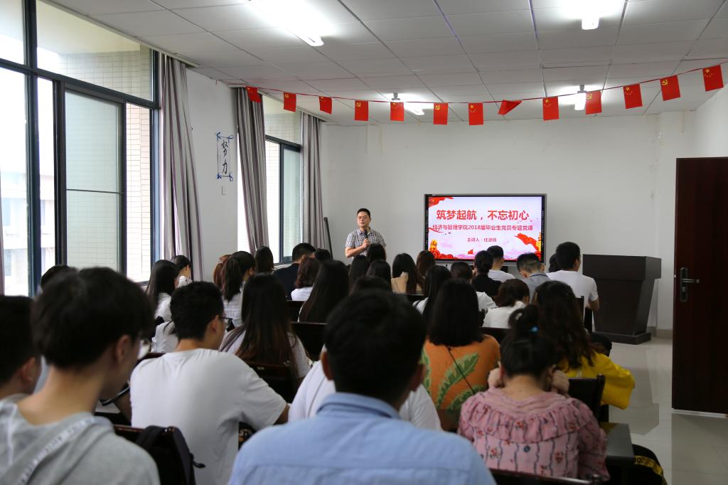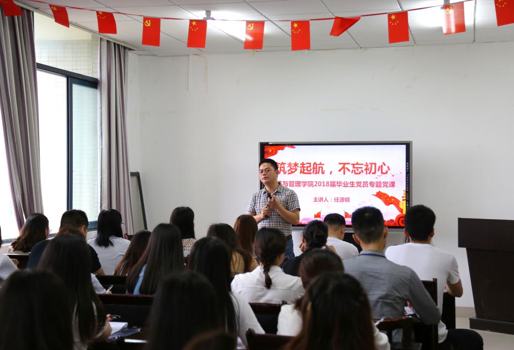 2018年6月14日上午9点,mansion88明升于汇贤楼515开展了218届毕业生党员专题党课。本次党课由mansion88明升党委副书记任源钢主讲,2018届全体毕业生党员参加。