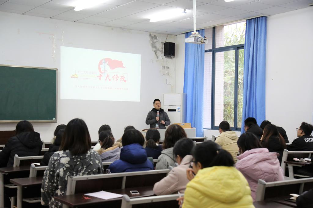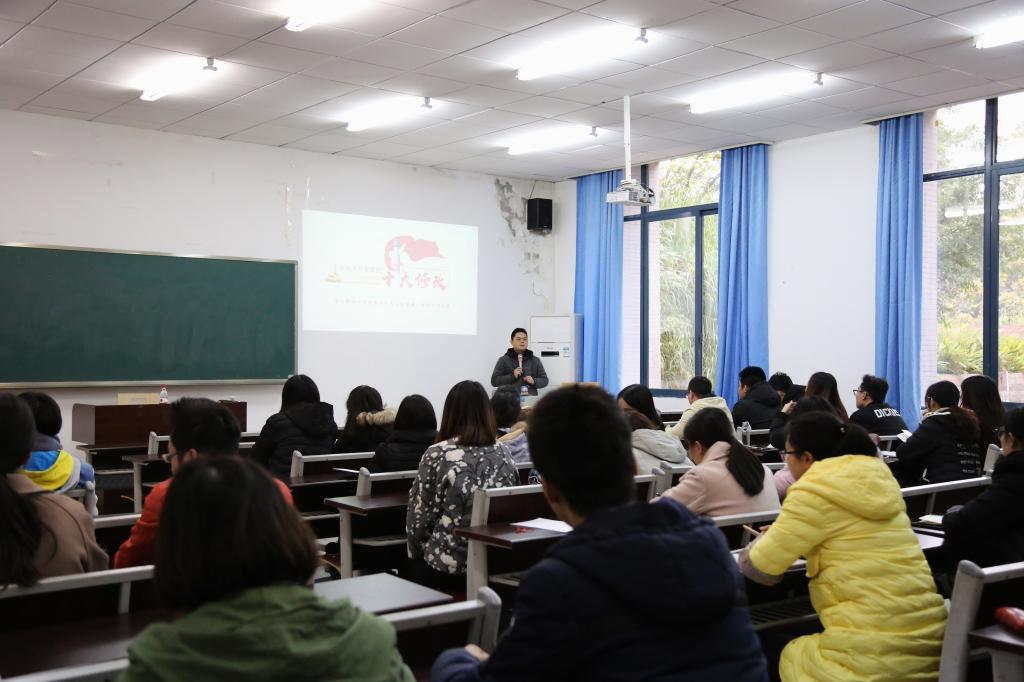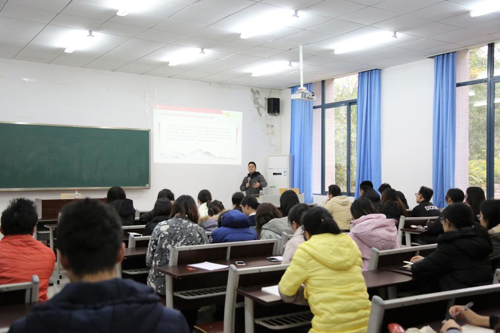 为深入学习贯彻党的十九大精神,进一步推进创新发展行动计划工作,12月14日下午两点半,mansion88明升全体学生党员在汇贤楼101召开十九大精神宣讲会。本次宣讲会由我院党委副书记任源钢做主讲人,学院全体学生党员到场学习。