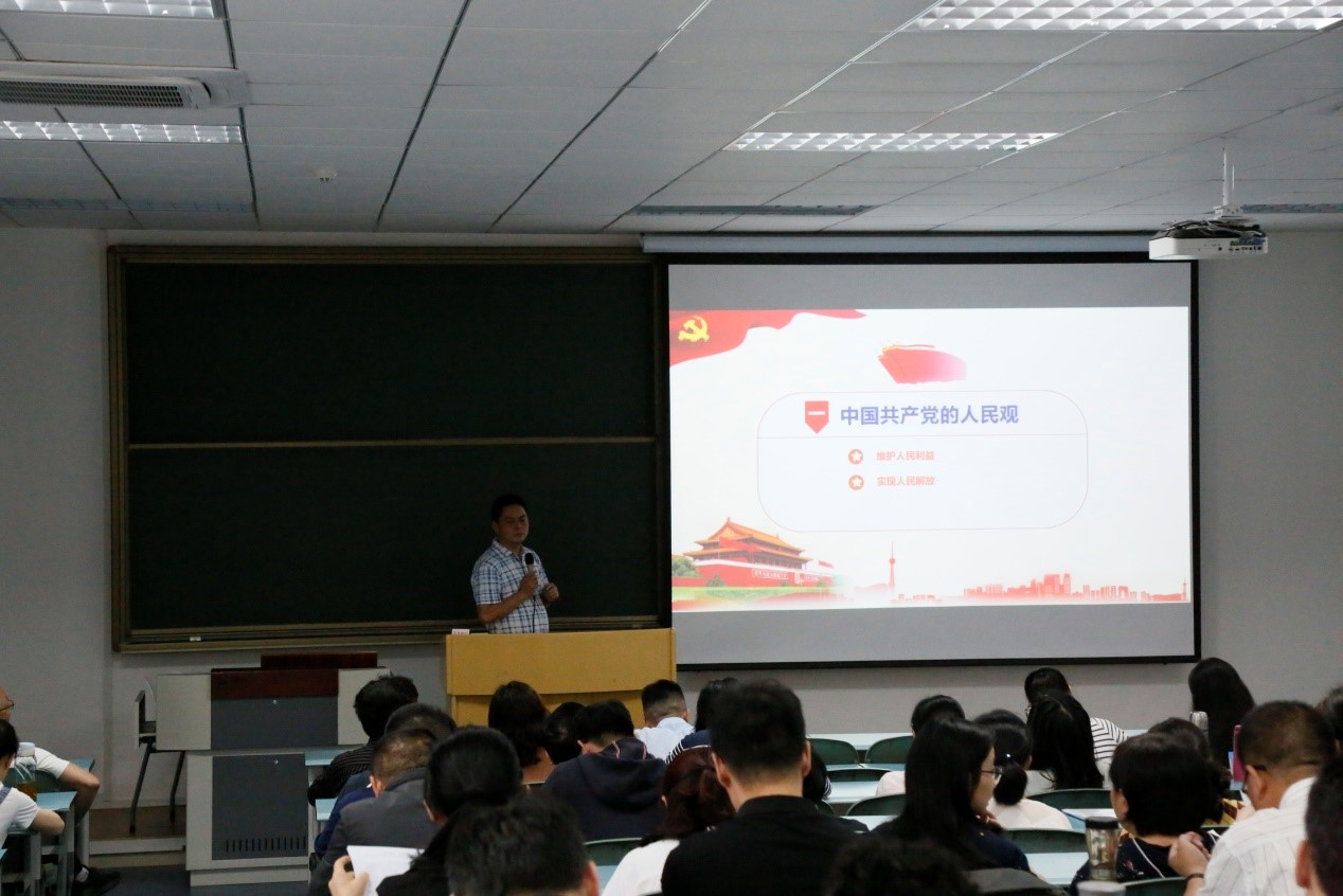 更好学习贯彻党的十九大精神,进一步加强和改进思想政治工作,2021年6月10日14:30,mansion88明升于求是楼213教室成功开展了“深入学习践行中国共产党的人民观”专题宣讲,认真学习贯彻习近平总书记重要讲话精神重要指示精神。学院党委书记税强主持活动,党委副书记任源钢导学,全体教师到场参与学习。