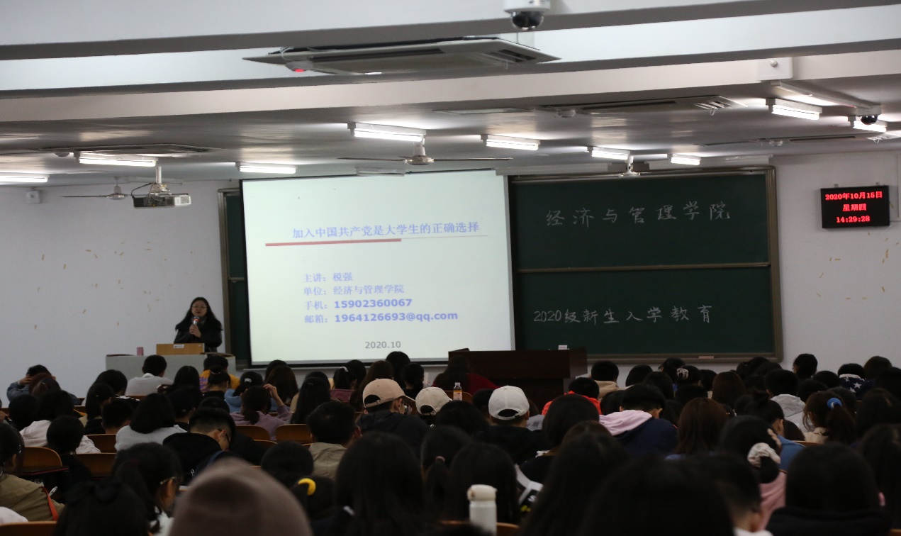 为使我院2020级新生加强对党的认识、树立正确的入党动机、端正入党态度、积极向党组织靠拢,mansion88明升2020级各专业积极开展了新生入学教育活动。10月15日,2020级新生在特教楼2315教室开展了以“加入中国共产党是大学生的正确选择”为主题的新生入学教育。主讲人学院党委书记税强向同学们介绍了加入中国共产党的原因、申请入党的基本条件和程序。进一步引导同学们理解马克思主义和爱国主义,建立对党的正确认识。
