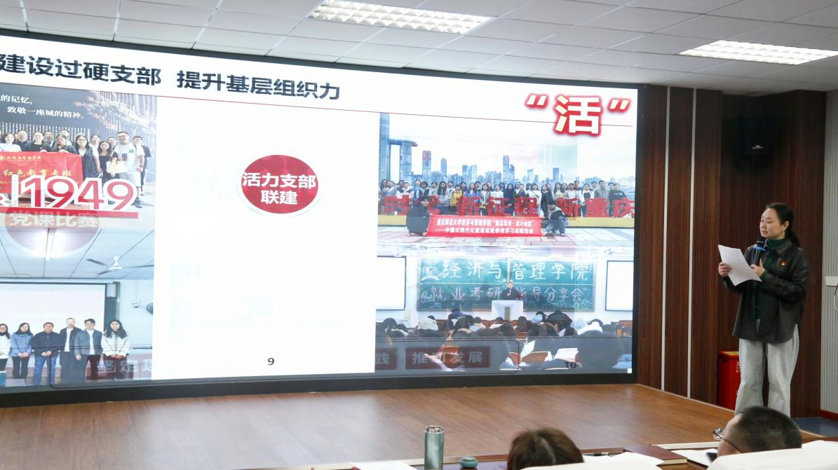 党支部书记述职后,学院党委书记钟敏进行总结。她对2023年度各党支部的工作给予了肯定,她谈到,学院基层党组织工作呈现“全”、”多“、“活”、“融”四大特点,“全”是党建工作“国家级-市级-校级”三级“双创”体系实现了全覆盖;“多”是支部多,党员多,发展党员任务重;“活”是组织生活的形式多样化;“融”是党建工作与学院的教育教学科研工作深度融合。同时她对党支部建设提出了三点希望和要求:一是进一步培育“活力支部”联动党建品牌,提升基层组织力。进一步凝练深化具有时代特征、经管特色的党建模式;二是进一步加强对党务工作队伍培养;三是进一步健全基层党组织工作保障制度,将基层党组织建设真正纳入学院总体工作中,统筹规划、统一考核,在人、财、物等方面给予基层党组织建设更充分的支持。