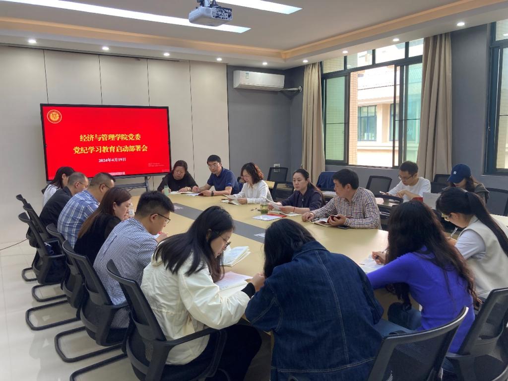 4月19日上午,学院召开党纪学习教育专题部署会,安排部署学院党纪学习教育工作。党委委员,各党支部书记参加会议。党委书记钟敏主持会议。