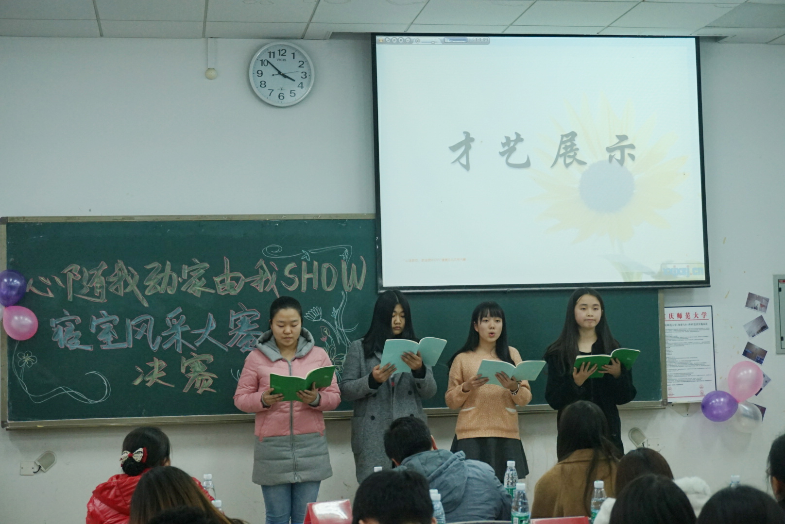 为丰富大学生的课余文化生活,调动大学生的积极性,增加宿舍成员的友谊,12月10日下午3时,mansion88明升“心随我动,我来show”寝室风采大赛决赛在弘德楼12402隆重举行。担任此次活动的评委有mansion88明升辅导员胡雪梅、mansion88明升雅风苑宿舍管理员罗萍、mansion88明升校学生会生活部部长张寒悦、mansion88明升学生会生活部部长阮月辉,参赛选手及亲友团们也悉数到场。