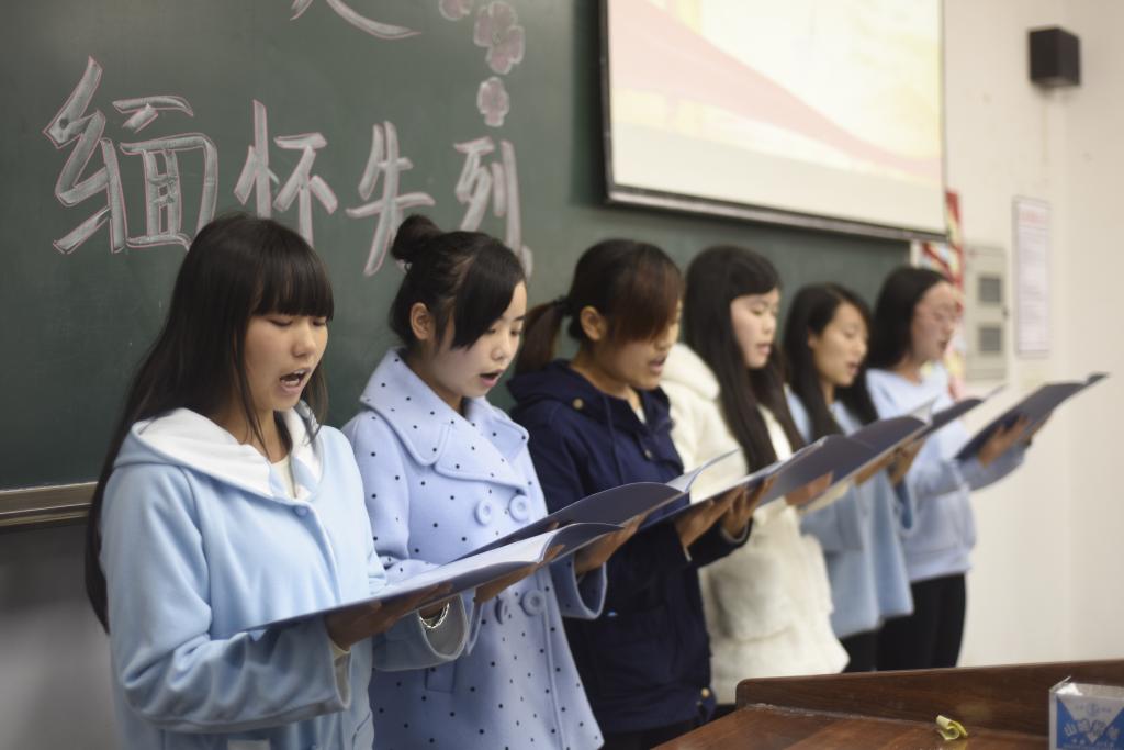 接下来,全体同学齐唱强军战歌,共同唱响了自己对于祖国和民族的忠诚与热爱。先烈,我想对你说环节里,表白墙上满满的字迹彰显了同学们对革命先烈的敬佩与爱戴。最后,六位协会代表以“铭记历史,缅怀先烈”为主题进行了诗朗诵,在他们深情并茂的朗诵中,历史已然被铭记,先烈们更是活在所有人心中。