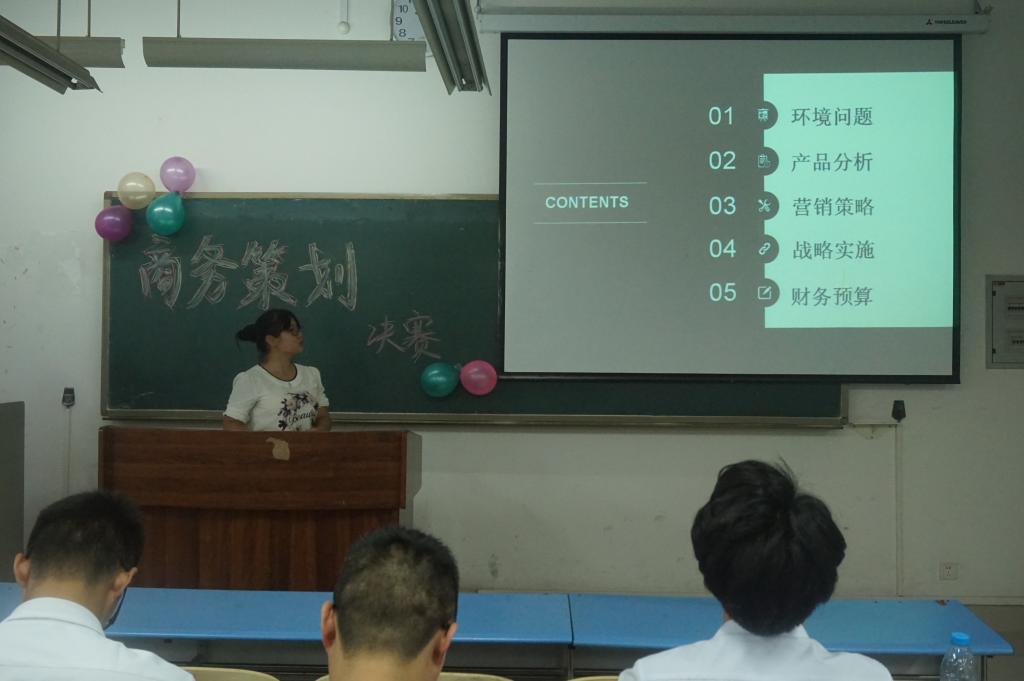 经过初赛的选拔,共有八支队伍脱颖而出,八个团队围绕大学城火锅店改革、端午促销活动、太阳花摄影馆经营模式以及西装销售四个方面进行策划,就自己所做的策划展开详细讲解。在评委提问环节中,选手们沉着应对、冷静回答,认真听取评委建议并表示会根据评委建议再次对策划书进行改进。经过激烈的角逐,“小策汇”团队摘得比赛桂冠,“四朵金花”、“正南齐北”获得比赛亚军。