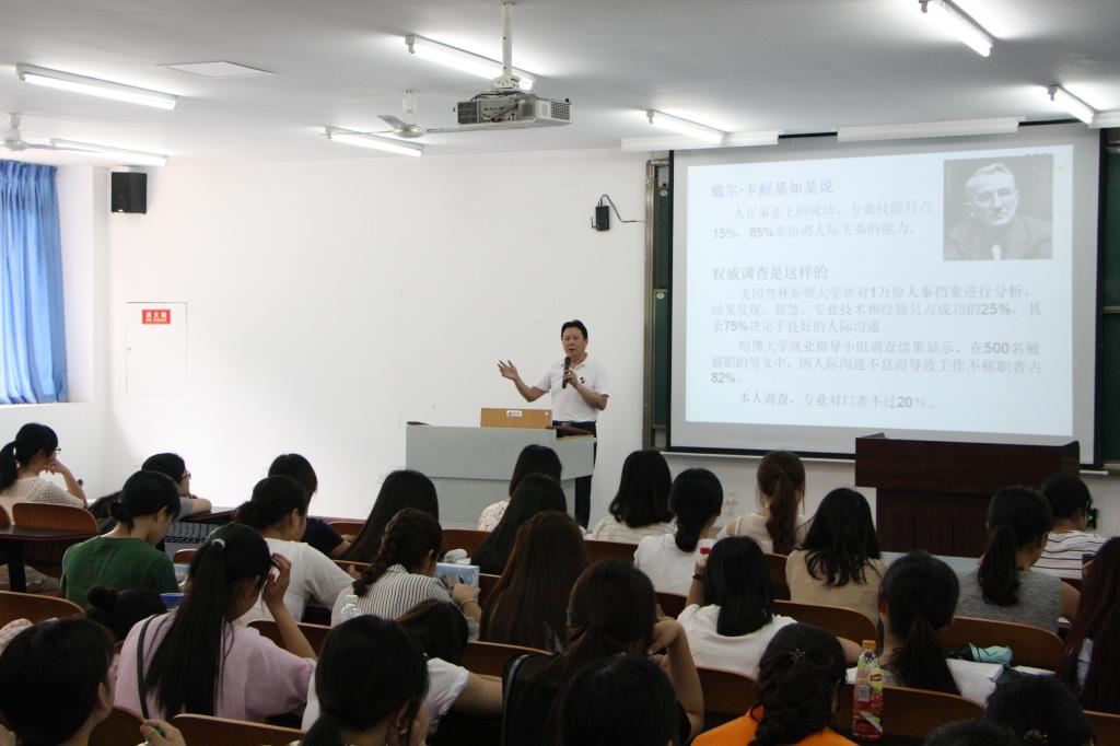 2016年5月6日下午14:30,重庆国际投资咨询集团监事会主席、党委副书记、纪委书记、高级工商管理硕士,中华教育艺术家协会会员甘永祥先生应邀在mansion88明升为我院2015级全体学生开展了题为“人际善沟通,事业能成功”的讲座,讲座由陈道平副院长主持。