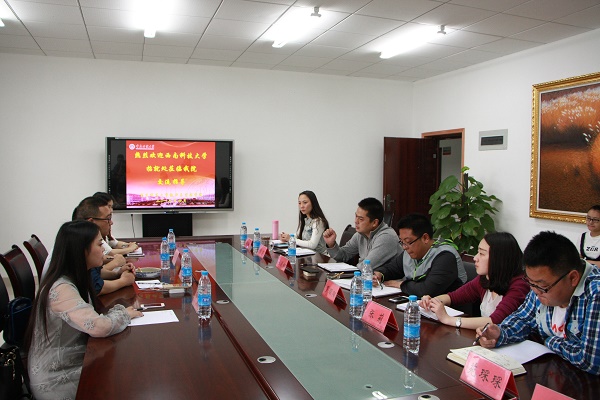 2016年4月19日下午4时30分,西南科技大学招就处就业科罗林、阳刚,校友办马艳丽等一行4人到访我院。我院党委副书记任源钢,全体辅导员及学生会主席团全体人员参加了座谈会。