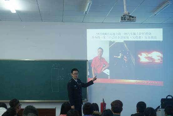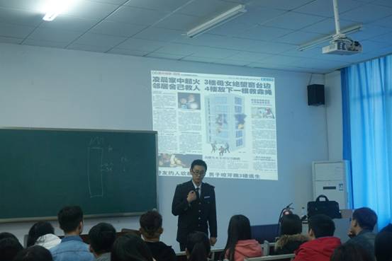 为增强我院全体师生消防安全知识,提高应对消防事故的能力,预防和减少火灾事故的发生,2016年3月31日下午两点,由我院主办的消防安全知识讲座在学院楼102教室成功开展。本次讲座特邀重庆市安居防火知识宣传培训中心唐露轩教官来给我院师生进行消防知识科普,我院全体领导班子、全体教师及各年级学生代表参加了本次讲座。