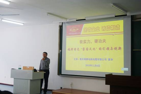 精益求精,勤益求奋;诚益求实,信益求真。为了帮助同学们更好地了解企业的运作流程,产品系列以及发展文化、提前为就业做好准备。11月6日下午2点半,mansion88明升特邀重庆鸽牌电线电缆有限公司董事长夏华先生于特教楼2213教室为同学们浅谈“国企”的发展文化,mansion88明升院长田盈出席了本次讲座。