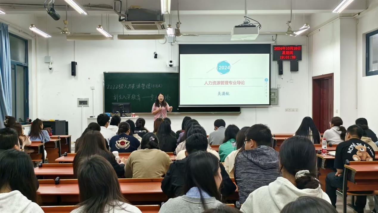 为帮助学院2022级专升本的新生深入了解专业学习方向以及本专业相关基础知识,快速适应专业学习,2024年10月10日,“2022级专升本新生入学教育—专业导论”专题讲座在弘德楼12102和求是楼213教室顺利展开。本次讲座由学院吴潇航老师以及柳曼老师主讲,共140余名专升本新生参与此次入学教育。