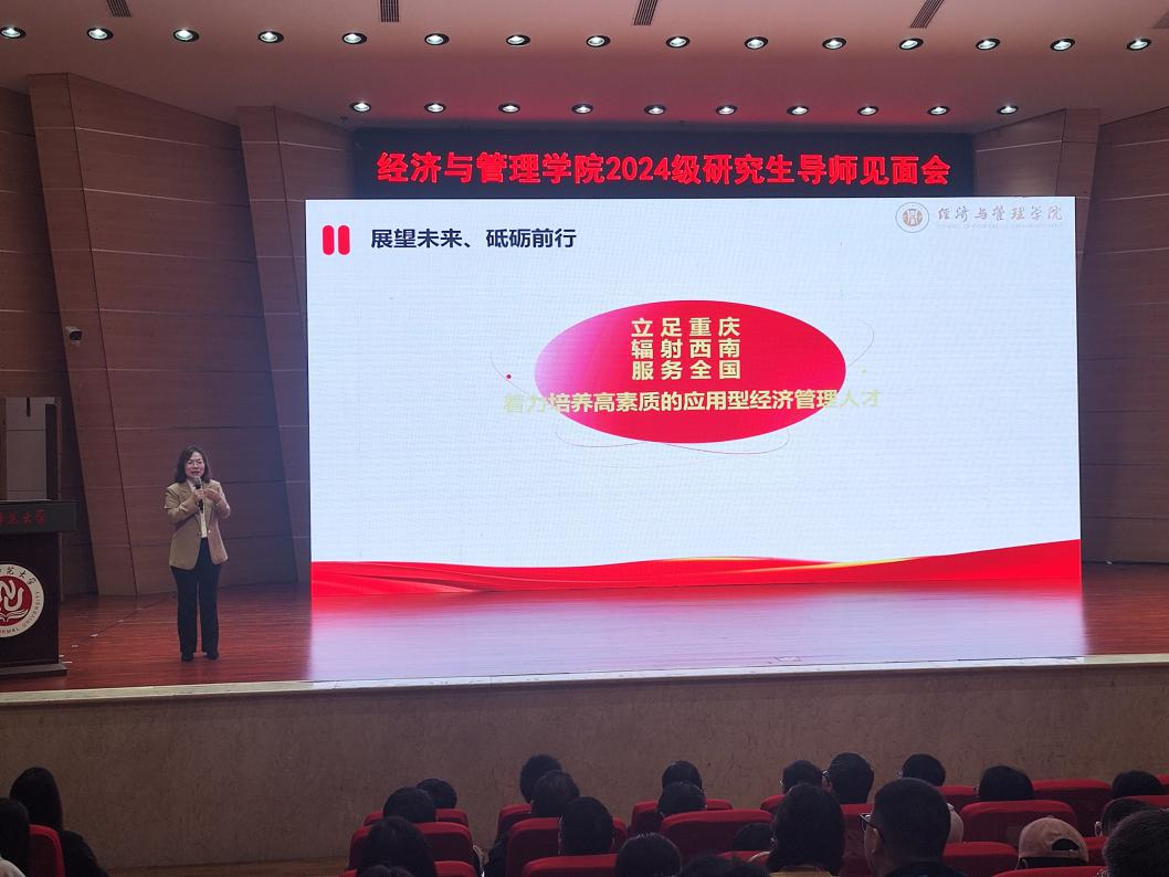 随后,执行院长郑景丽介绍了学院的办学现状及其发展历程。郑院长表示,mansion88明升自成立以来,经历了从初创理念的确立到逐步克服挑战、实现规模扩大的不同阶段。学院目前拥有一支师德高尚,具有深厚学术功底、精湛教学能力和科研能力的教师队伍,他们在教学与科研上均取得了丰硕成果。然后,郑院长重点介绍了应用经济学、管理科学与工程、工商管理学等三个一级学科的建设情况、研究生学术创新能力和实践能力的培养过程以及各个专业就业去向情况等。最后,郑院长鼓励2024级研究生努力学习,不负韶华。
