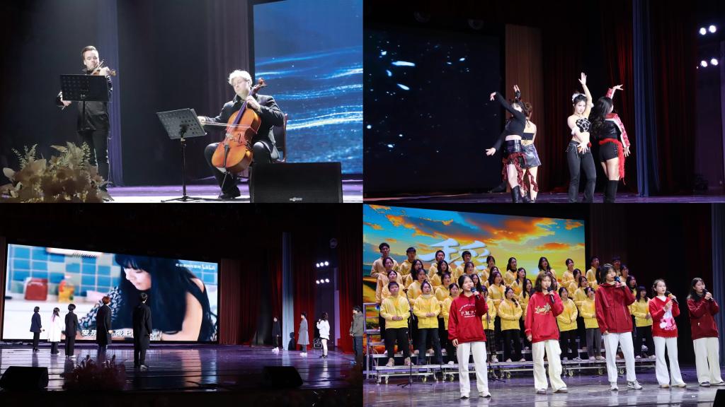 燃梦韶华,青春飞扬。晚会以柴可夫斯基音乐学院谢尔盖·伊林诺夫和费奥多尔·阿莫索夫两位音乐大师的乐器演奏拉开序幕,给观众们带来一场绝伦的视听盛宴。舞蹈串烧《black and pink》以动感的舞姿展现青春的活力,激情澎湃的音乐即时燃炸现场,引起台下阵阵欢呼。手势舞合唱《我乘着风飞过来》歌声悠扬,鼓励人们勇敢追寻自己的梦想,乘着风飞向更高想天空。舞蹈《恋爱告急》的舞者们在舞台上绽放青春的舞步,诠释年轻一代对爱的看法。情景合唱《稻香》旋律轻快,五彩的纸飞机满载着新生们对美好未来的憧憬。趣味配音《爱情公寓》用生动有趣的方式演绎出每一角色的灵魂,激励人们珍惜当下,奋勇前行。