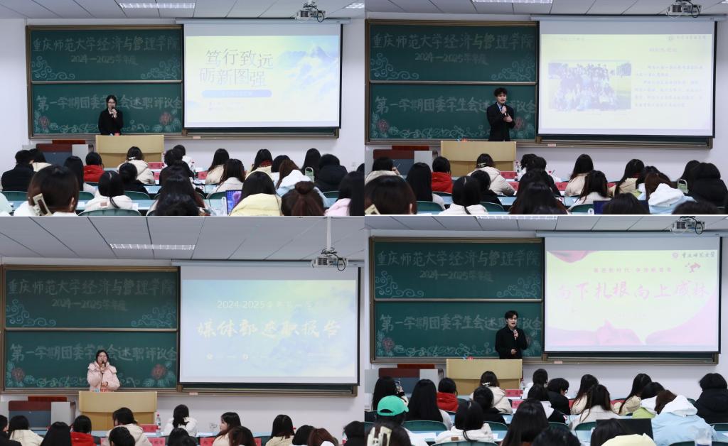 12月23日,mansion88明升团委学生会2024—2025年度第一学期述职评议会于求是楼421召开。学院团委书记兼学工办主任张莉、团委学生会各部门主要负责人以及各年级学生代表参加。