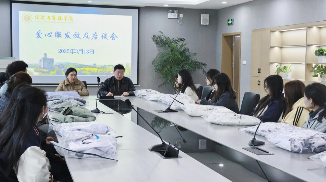 为进一步落实学校关于资助育人相关工作要求,帮助家庭经济困难学生解决实际问题,引导学生感党恩、跟党走,2025年3月13日下午,我院于求是楼329举行爱心服发放及座谈会。学院党委副书记李青松、辅导员刘炜婳出席本次座谈会,学院20余名受资助学生代表参与本次座谈。