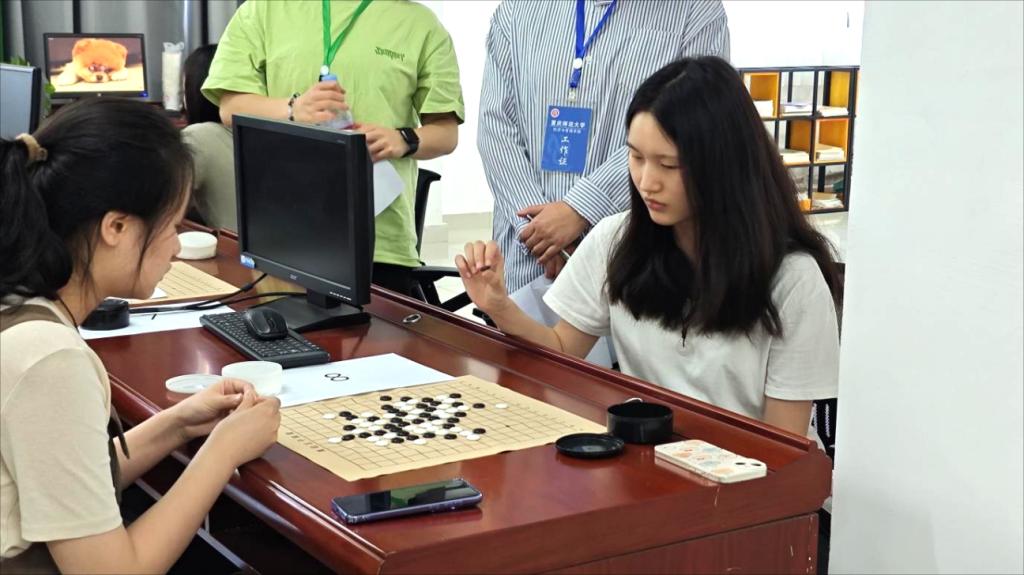 比赛分为象棋和五子棋两个项目,采用淘汰制与积分制相结合的赛制。赛场上,气氛紧张而热烈,同学们全神贯注,沉浸在棋局的世界中。象棋比赛中,“楚河汉界”划分出双方阵营,兵来卒往、炮飞马跳,每一步棋都充满了变数与挑战。一番激烈的角逐后,周芸夺得一等奖,陈梵获得二等奖,罗美兰获得三等奖。五子棋比赛中,黑白棋子交错纵横,双方着眼全局,每一步都凝聚着智慧与策略。经过巧妙的对弈,王婉婷荣获一等奖,殷茂娟获得二等奖,蔡欣怡获得三等奖。