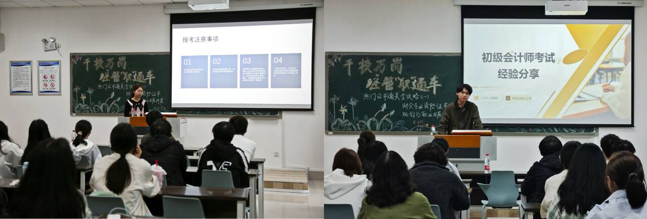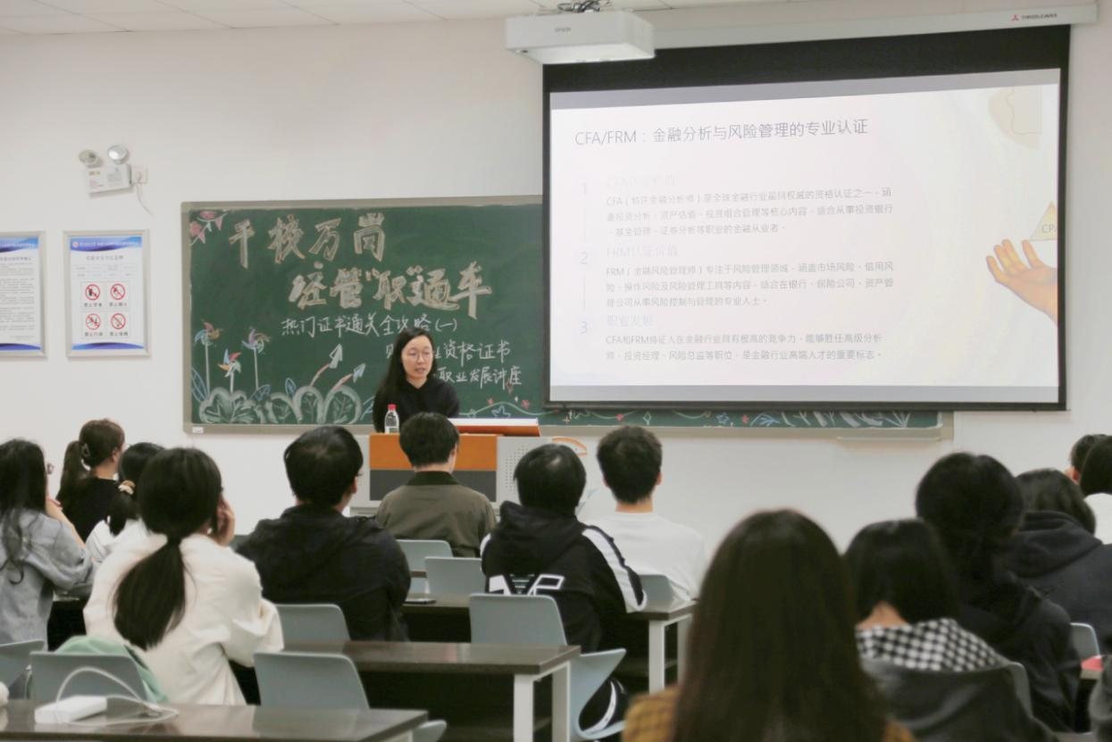 为助力我院学子明晰职业发展方向,了解财会行业的发展趋势,科学规划职业发展路径,4月25日下午,mansion88明升在求是楼215开展热门证书通关全攻略(一)——财会专业资格证书规划与职业发展讲座及经验分享。本次活动由财务金融系讲师毛怡欣博士主讲,并邀请两位考取初级会计师证的同学分享周静雯、邱晨轩备考经验。