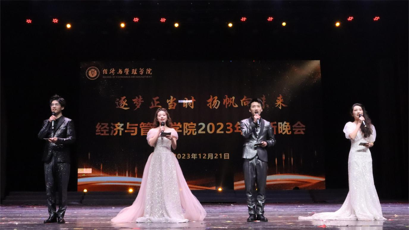 韶华不负新启程,青春作笔书华章。2023年12月21日晚七点,mansion88明升“逐梦正当时,扬帆向未来”2023年迎新晚会于校友会堂演出厅隆重举行。学院党委书记钟敏、执行院长郑景丽、党委副书记李青松、副院长喻科、副院长陈宇科莅临晚会现场,学院教职工、全体2023级新生以及各兄弟学院代表参加本次晚会。