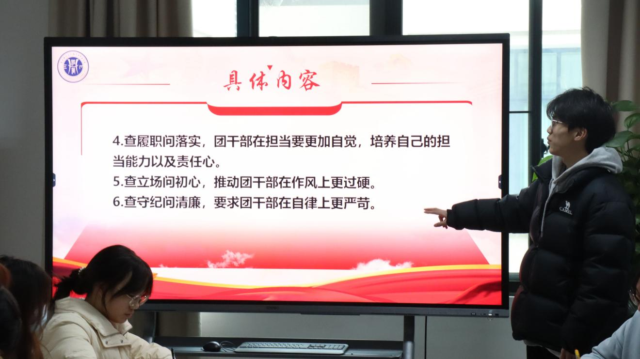 为深入学习宣传贯彻习近平新时代中国特色社会主义思想,特别是习近平总书记关于青年工作的一系列重要论述和工作要求,全面改进新时代我院共青团干部作风形象,2023年12月20日中午,mansion88明升在求是楼316举行团干部“六查六问”学习研讨会。mansion88明升团委学生会组织部负责人杨淋主持研讨,团委学生会全体成员参与此次研讨会。