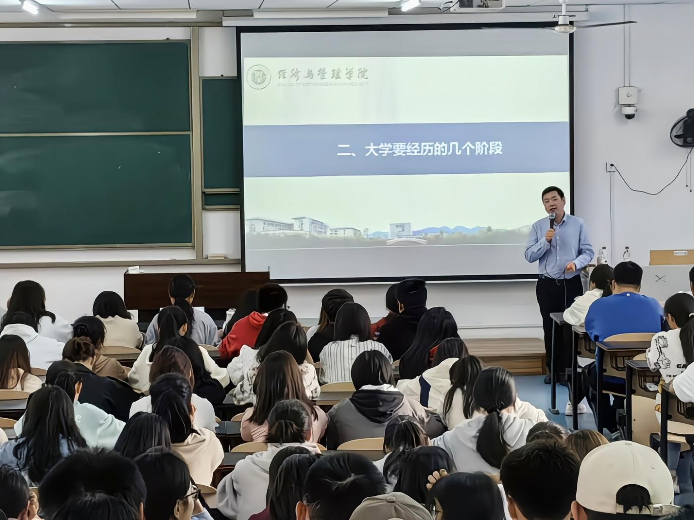 漫谈会上,李青松书记围绕个人成长与发展的规律、实现美好生活的必然要求、国家和社会发展的趋势,强调当代大学生应以增加个人技能、提升个人素养和符合现代社会发展规律的目的去合理规划大学生活。同时他谈到,在适应生活环境、积累和历练、分流发展、奋力冲刺四个阶段中,能够快速适应、成熟踏实、明确方向和顺应大势的人更容易获得成功,希望同学们能够在大学期间注意专业、管理、人际、课堂等问题,从容应对以突破自我,实现自我提升,积极传递社会正能量,并鼓励23级新生真抓实干,志存高远,认真把握自己的命运,不过多计较曾经,踏实学习并练好本领,在社团活动和第二课堂中,做到不负年华、全面发展。