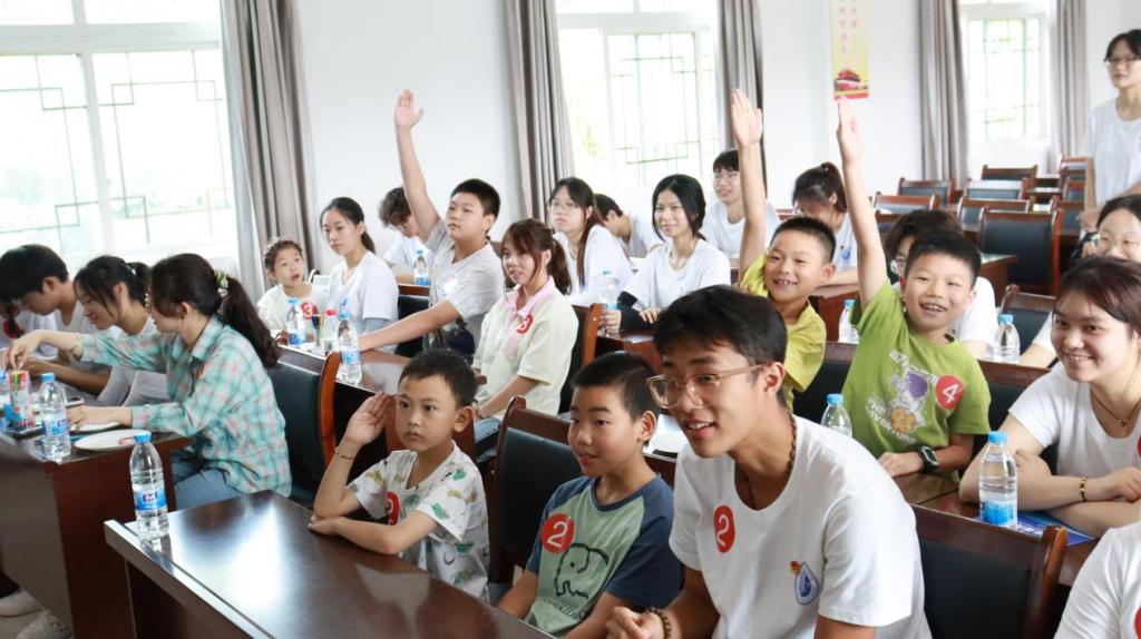 中华村党群服务中心里,促进团成员以环保教学视频入手,分别从“节水、节电、节粮、节能”四个方面向小朋友们普及低碳小妙招,学习如何在生活中切实实现节能低碳;开展低碳“趣”抢答,将环保教学视频中的知识作为问题,检验小朋友们的学习成果,以寓教于乐的方式让低碳环保入脑入心。趣味小游戏中,成员们与小朋友一起积极投入、相互配合,欢声笑语化作夏日底色,暖心陪伴增添浓浓温情,共同守护童心梦。打造“童心趣玩季”,通过“环保小课堂”“趣味接龙”等多种形式巩固小朋友脑海中的环保知识的同时向留守儿童传递温暖与关怀,让他们的脸上更多一抹笑容,心中更多一缕温馨。